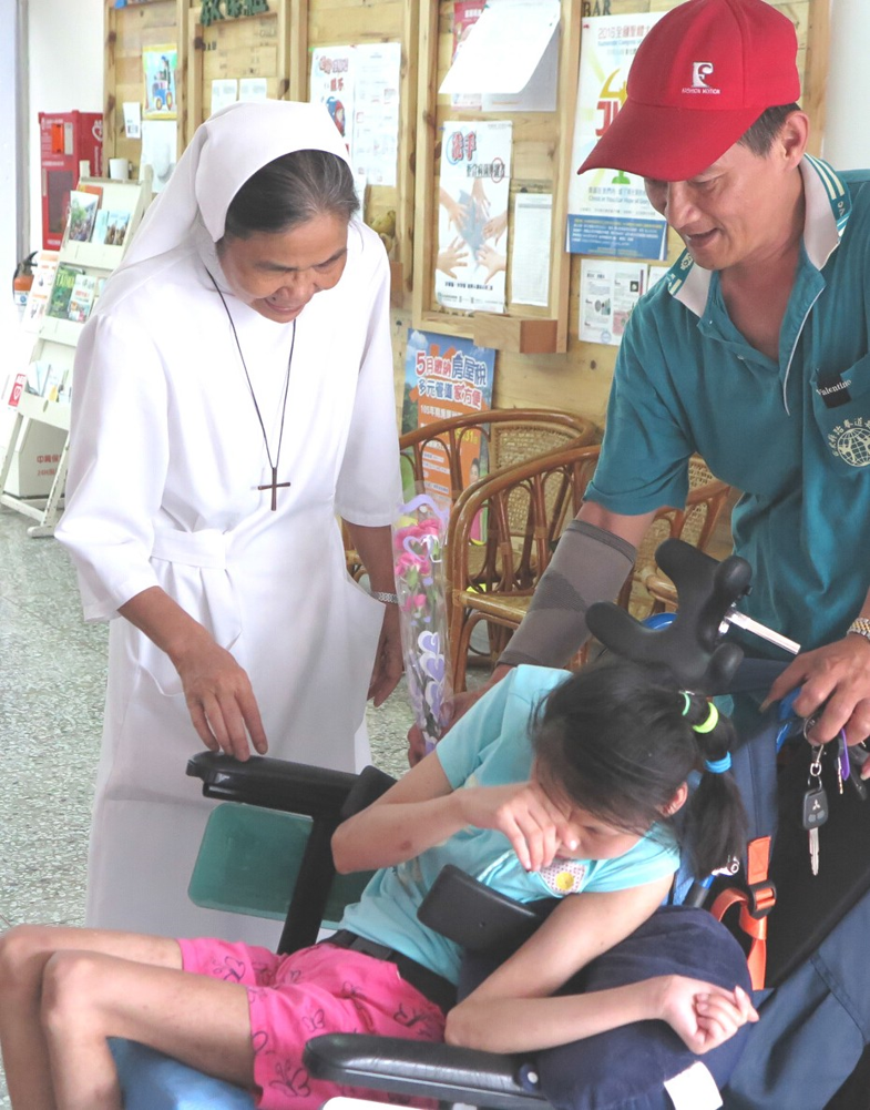 蘇 德 豐 神 父 在 聖 十 字 架 慈 愛 修 女 會 門 口 遇 見 一 位 智 能 障 礙 孩 童
